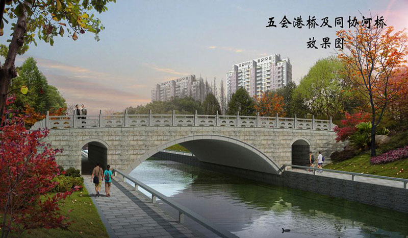 五會港與同協(xié)河上新建1*13m拱橋和1*11m拱橋 道路及綠化