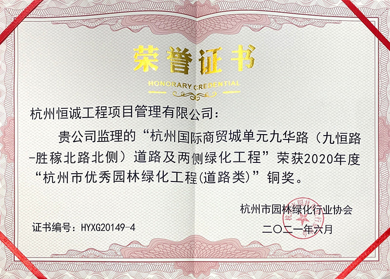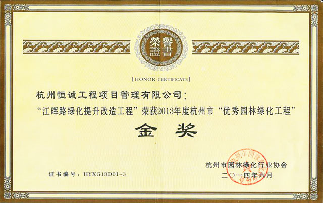 杭州市“優(yōu)秀園林綠化工程”金獎(jiǎng)