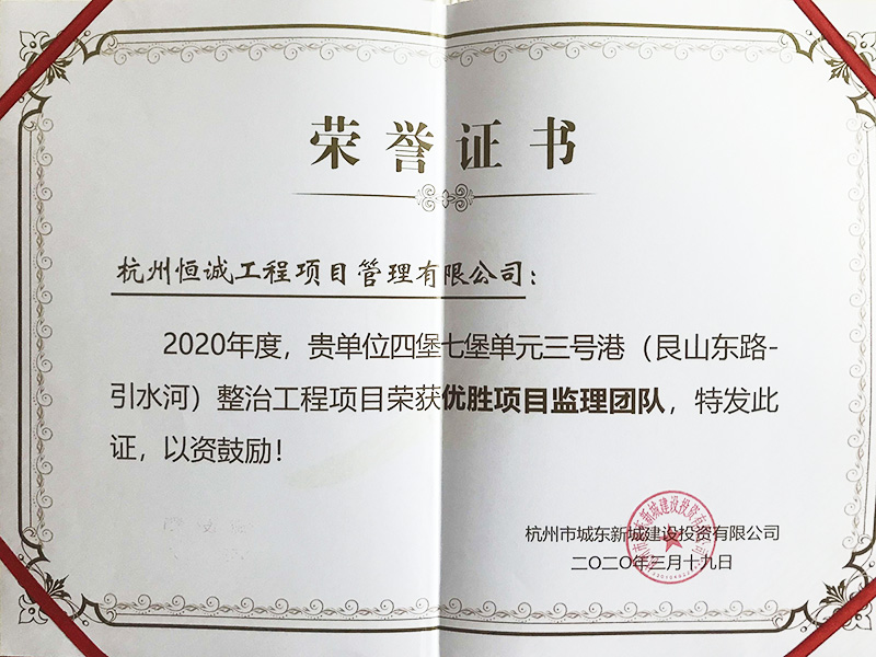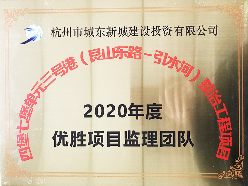 四堡七堡單元三號(hào)港(艮山東路-引水河)整治工程項(xiàng)目榮獲優(yōu)勝項(xiàng)目監(jiān)理團(tuán)隊(duì)