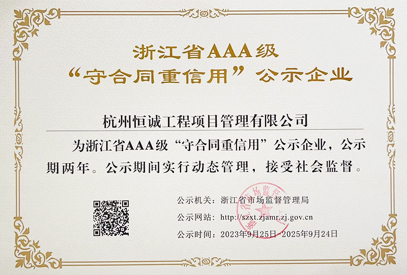 浙江省AAA級(jí)“守合同重信用”企業(yè)公示證書(shū)