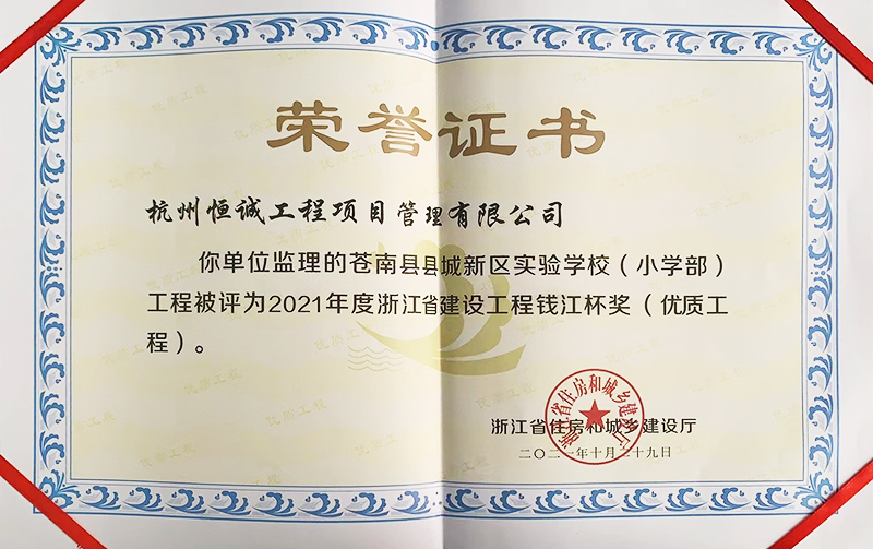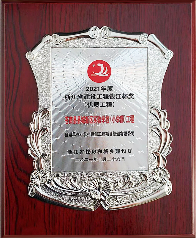 蒼南縣縣城新區(qū)實(shí)驗(yàn)學(xué)校(小學(xué)部)工程榮獲“浙江省建設(shè)工程錢江杯”(優(yōu)質(zhì)工程)