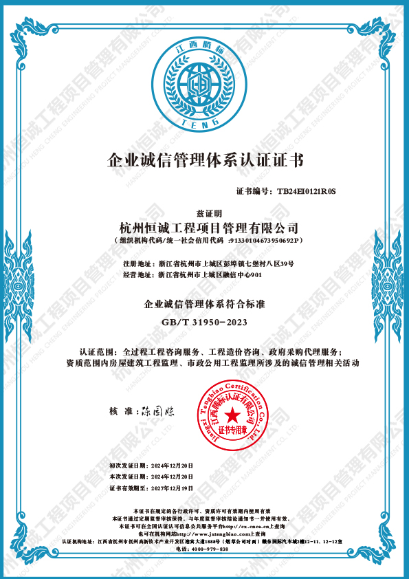 企業(yè)誠信管理體系認證證書